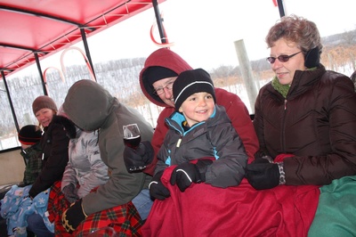 The pavilion is enclosed for the festivities and the heaters keep things nice and warm. Enjoy tractor drawn wagon rides around the vineyard, visit with Santa & Mrs. Claus (12pm - 3pm), or warm up fireside!